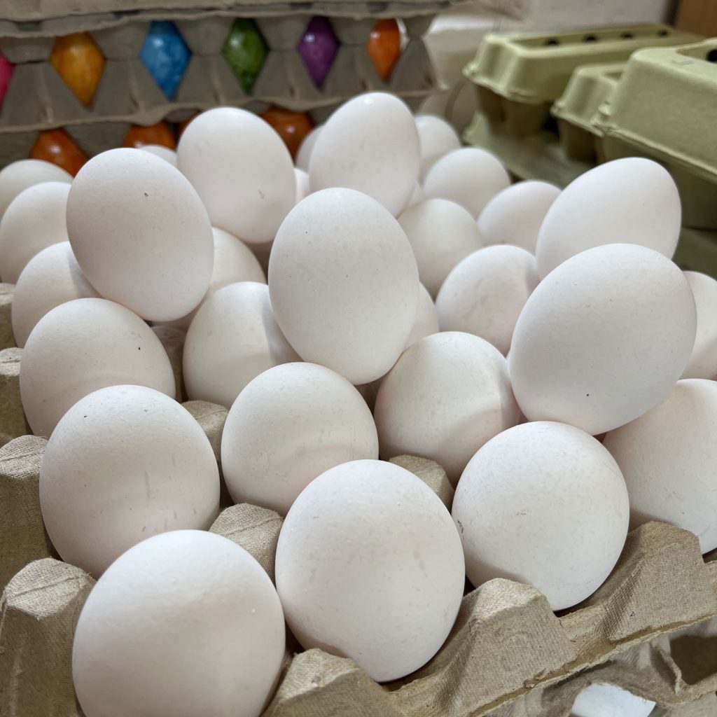 Die Verwendung natürlicher Materialien zum Färben von Ostereiern ist nicht nur umweltfreundlich, sondern verleiht den Eiern auch eine einzigartige und natürliche Ästhetik. Unsere weißen Eier aus regionaler Herkunft eignen sich dabei besonders gut für diese traditionelle Praxis. Die langjährige Zusammenarbeit mit regionalen Lieferanten verringert außerdem den Transportaufwand und damit die Umweltbelastung. Ein nachhaltiger Beitrag zur Sicherung und Erhaltung heimischer Arbeitsplätze und Unternehmen.